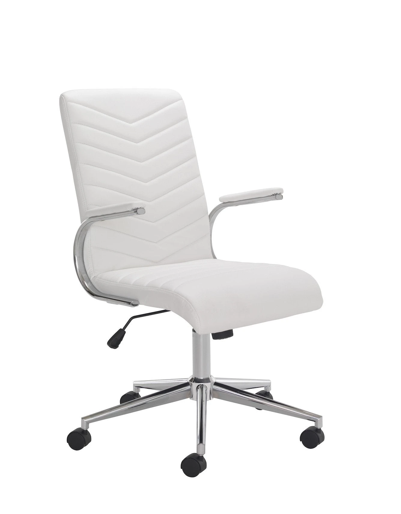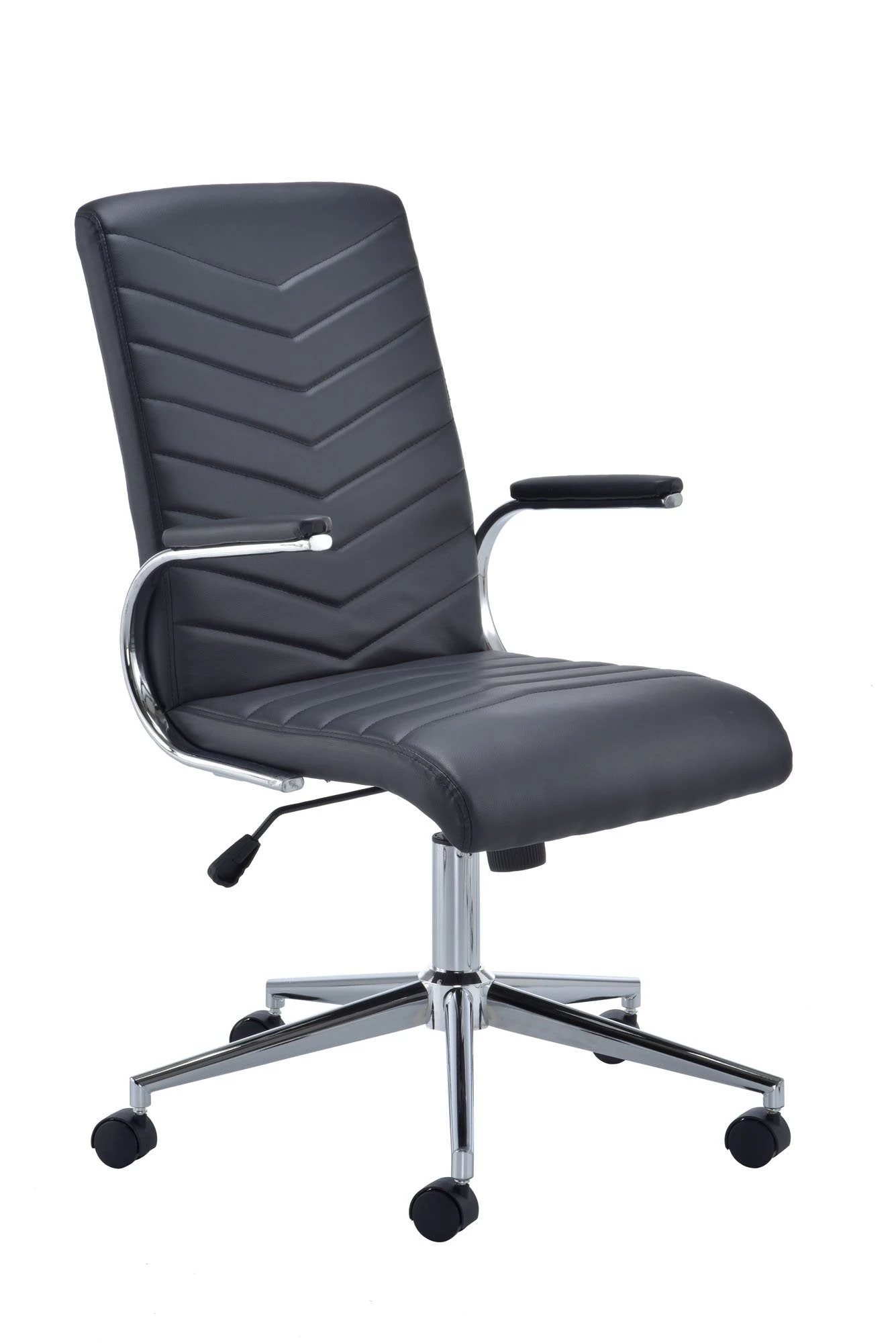 A meeting room doesn’t have to be stuffy – this chair brings chrome and soft PU to make it a stylish space. With a lock-tilt and torsion controlled chrome base and fixed, padded arms, as well as a comfy V-stitched back.