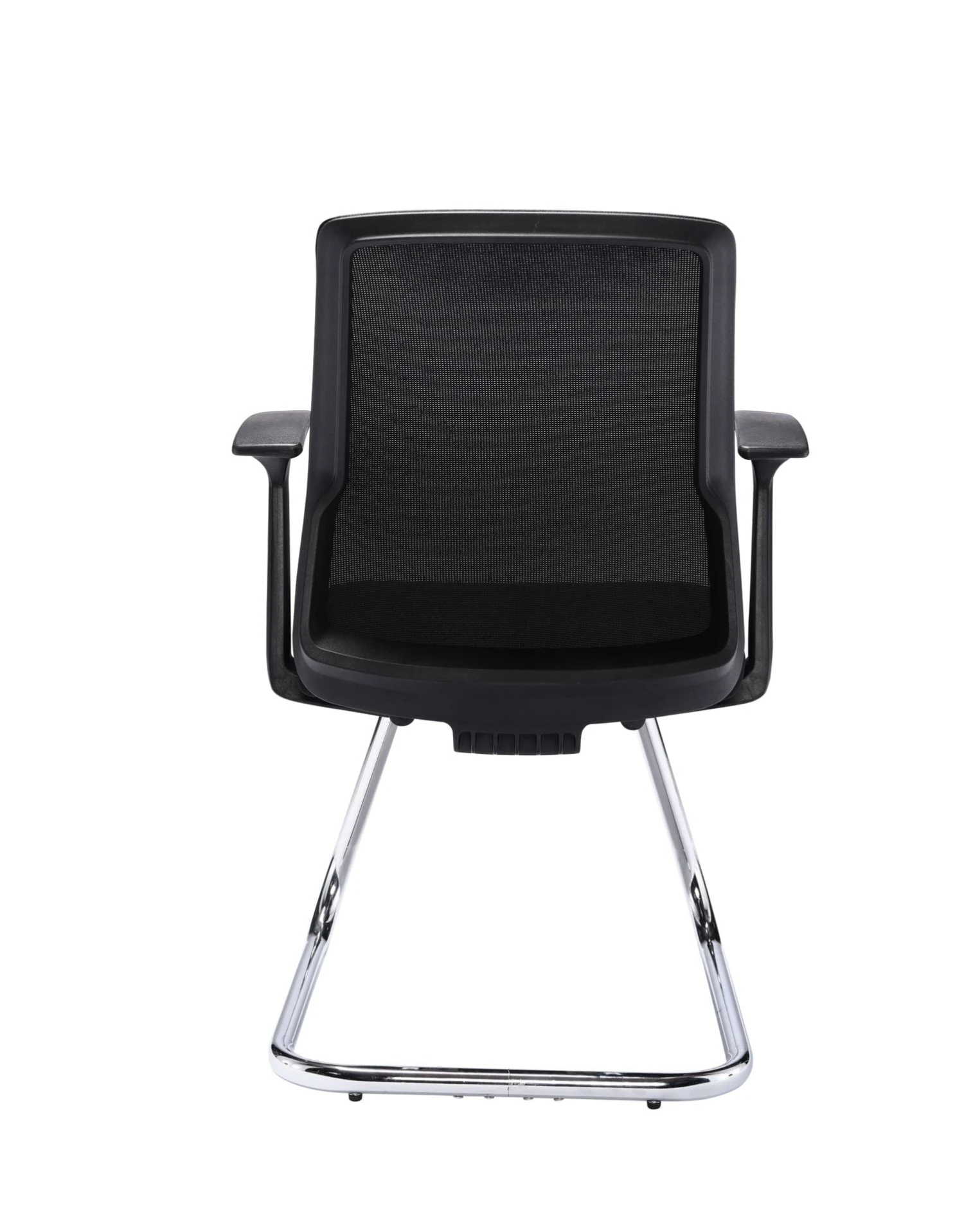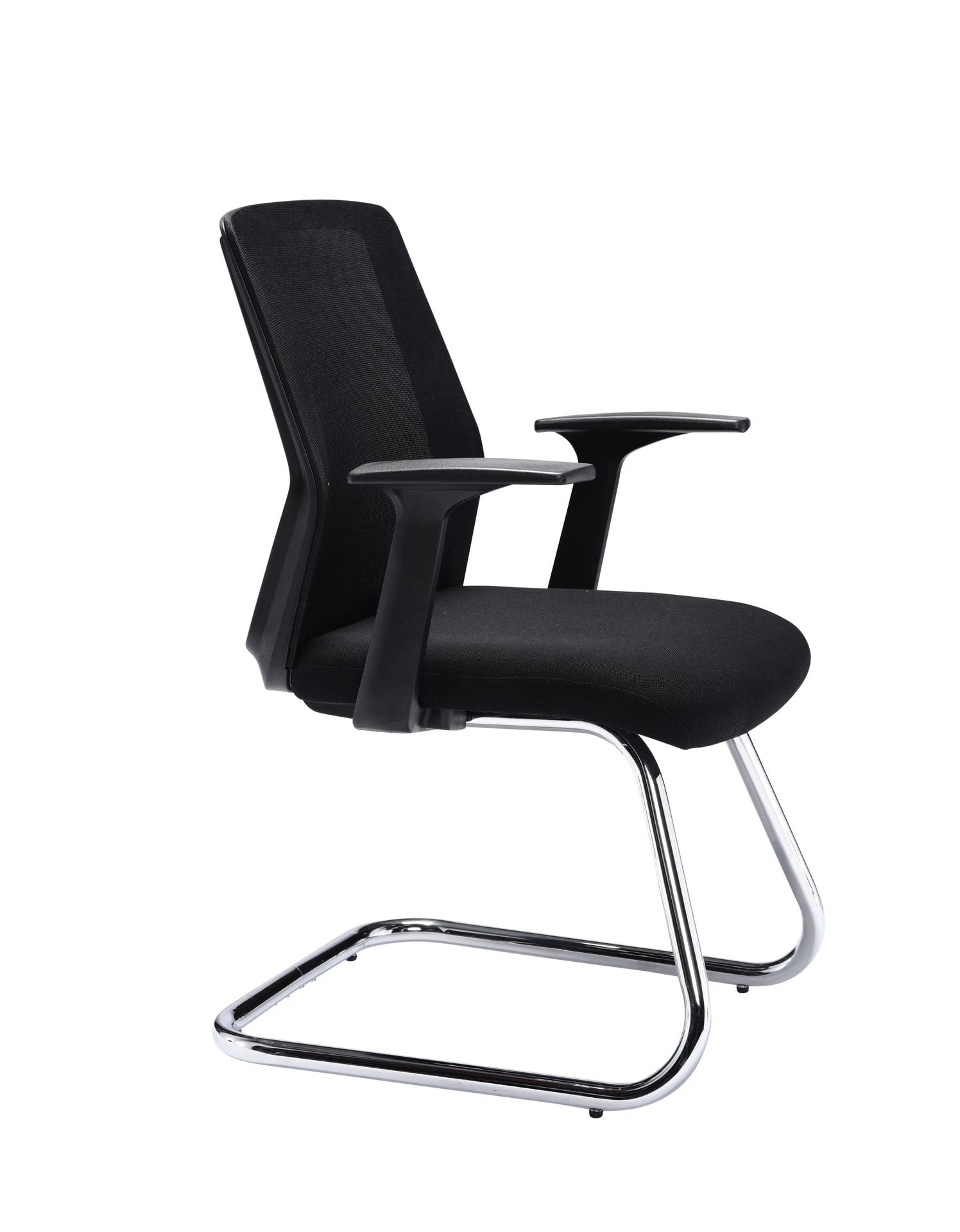 - A contemporary mid back mesh chair with a chrome cantilever base