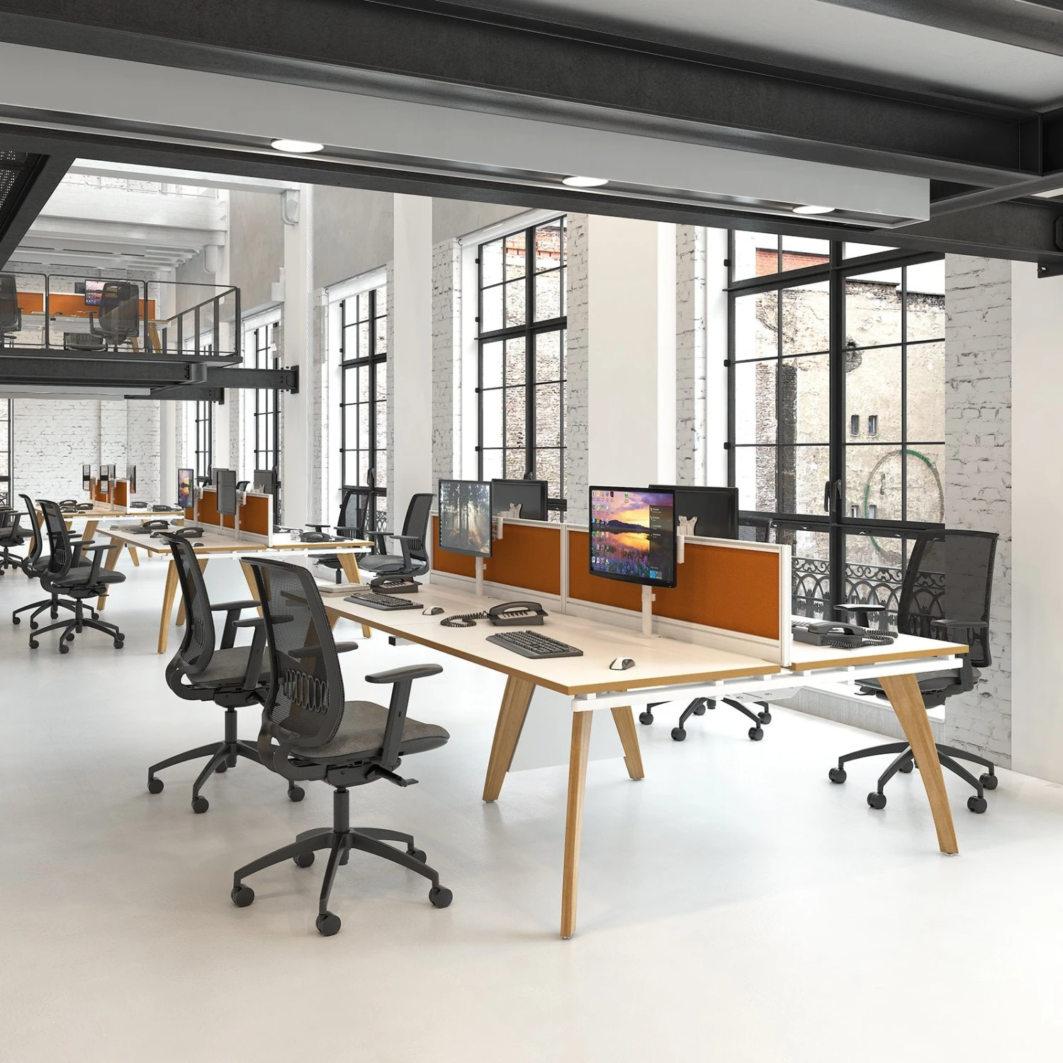 Fuze bench desks blend the best of European design with the highest workmanship standards to span a wide range of applications and support the most creative of workspaces.