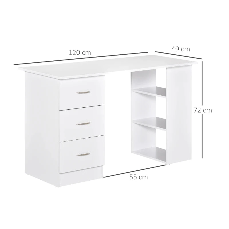 - 3-Tier Shelves & 3 Drawers: This home office desk features 3 drawers with silver handles for storing your office essentials. 3 open shelves provide extra space for displaying your favourite items. The drawer can be installed back or forth according to your needs, which makes the open shelf can be on the left or the right side.