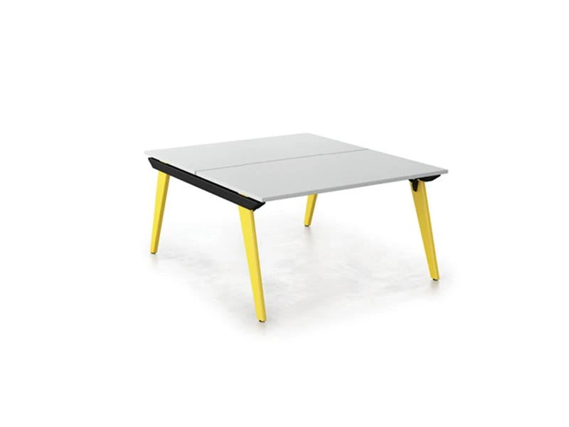 - Legs are shared between desk clusters with a recessed centre leg support to save space and costs