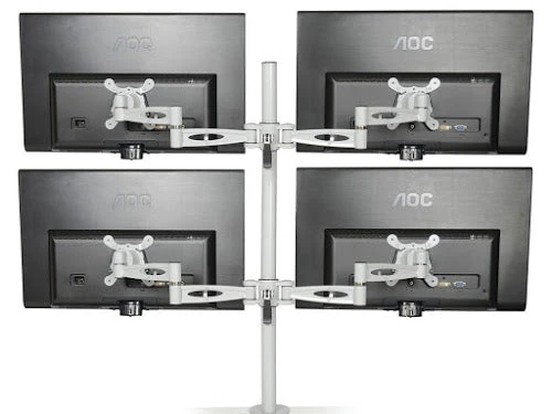 KARDO Pole Mounted Monitor Arm for 4 screens with quick release height adjustment and detachable VESA plate, available in Black, Silver & White. NOW with hand turn screws for fixing screen.