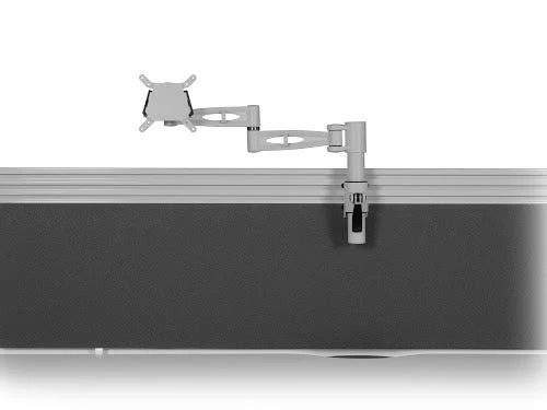 KARDO Desk Screen Mounting Pole Mounted Monitor Arm for single screen with quick release height adjustment and detachable VESA plate, available in Silver & White. NOW with hand turn screws for fixing screen.
