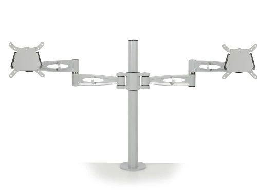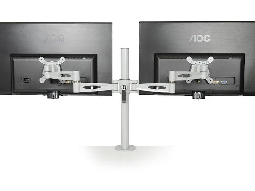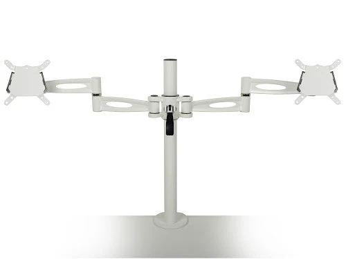 KARDO Dual Monitor Arm for twin screens with quick release height adjustment and detachable VESA plate, available in Black, Silver & White. NOW with hand turn screws for fixing screen.