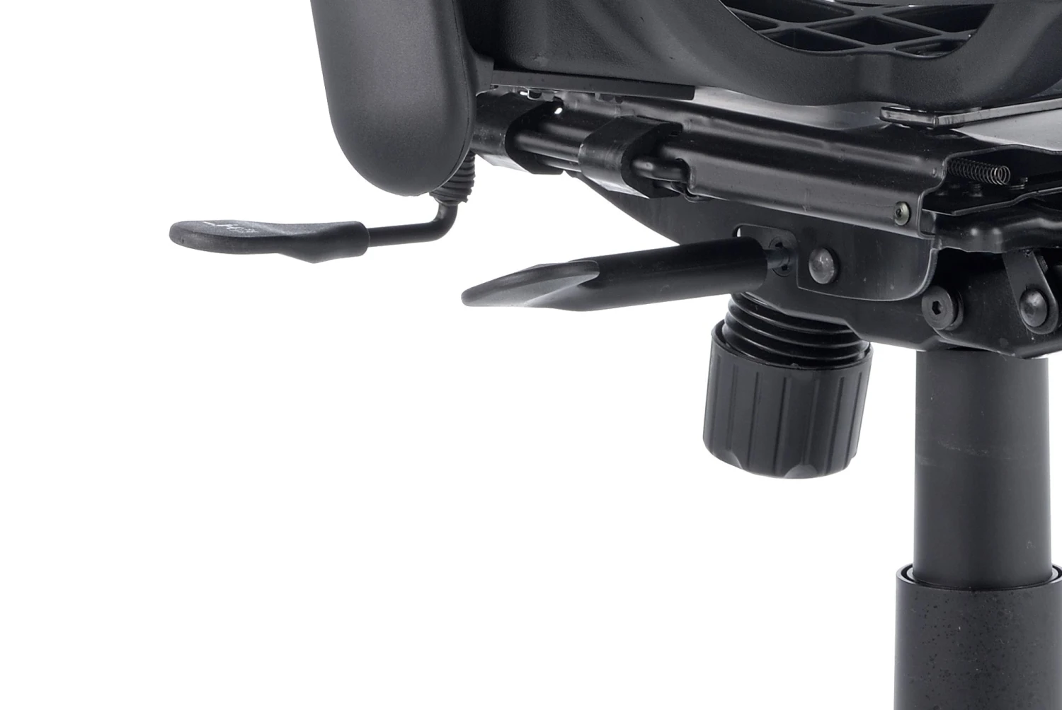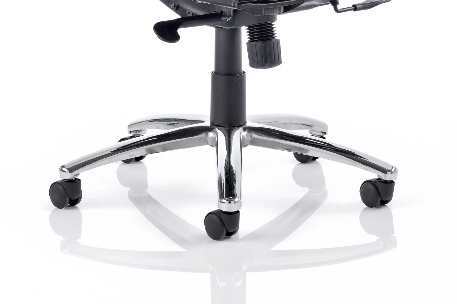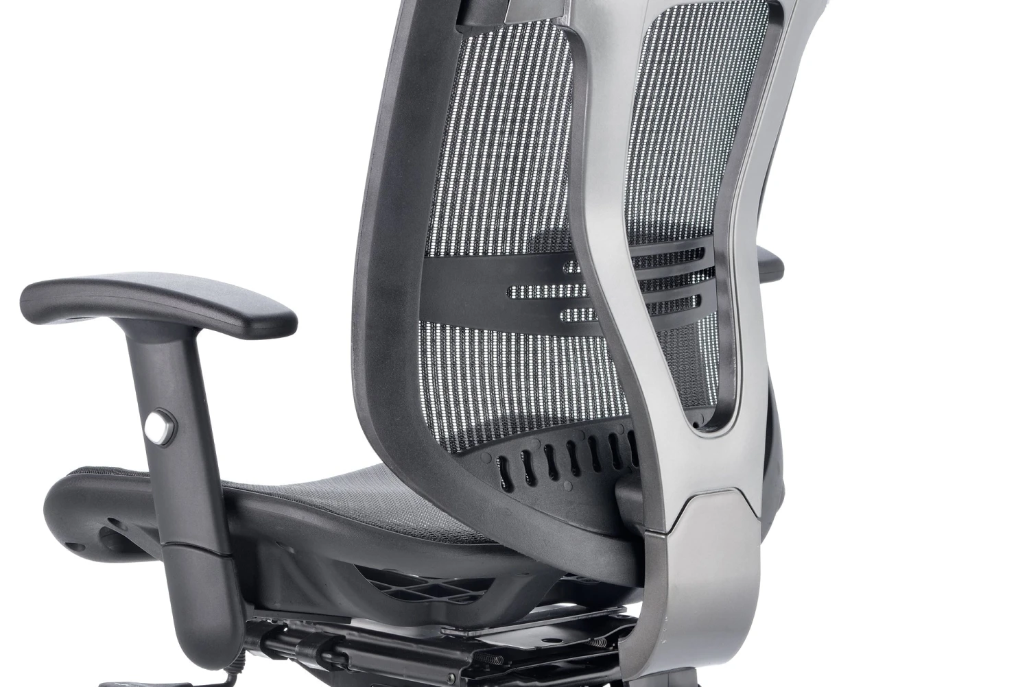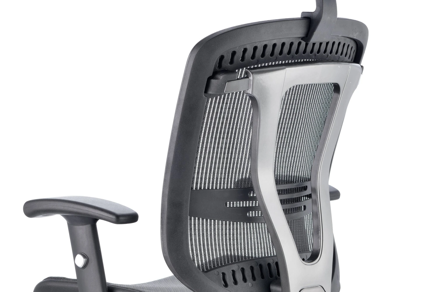b Comfortable sprung mesh back and seat b” Adjustable arms as standard b” Infinite lock mechanism b” Lumbar support b” Adjustable headrest b” Seat slide b” Headrest