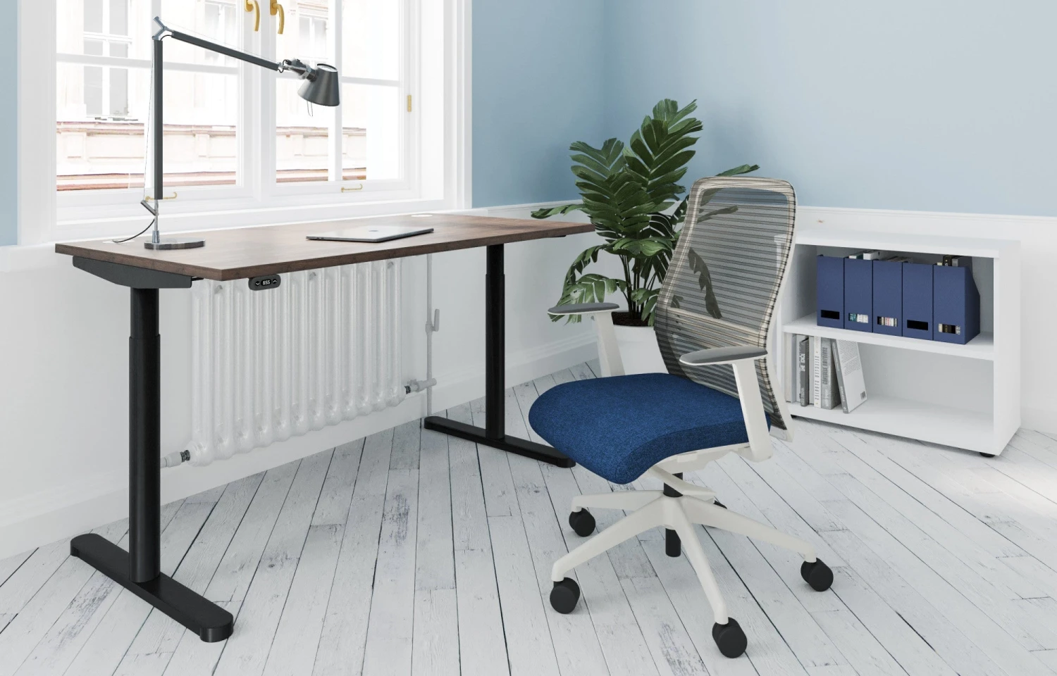 RoundE is a compact, space saving solution – ideal for small or home office environments. The RoundE sit-stand desk adjusts from a height of 650mm to 1150mm with the easy to use handset.