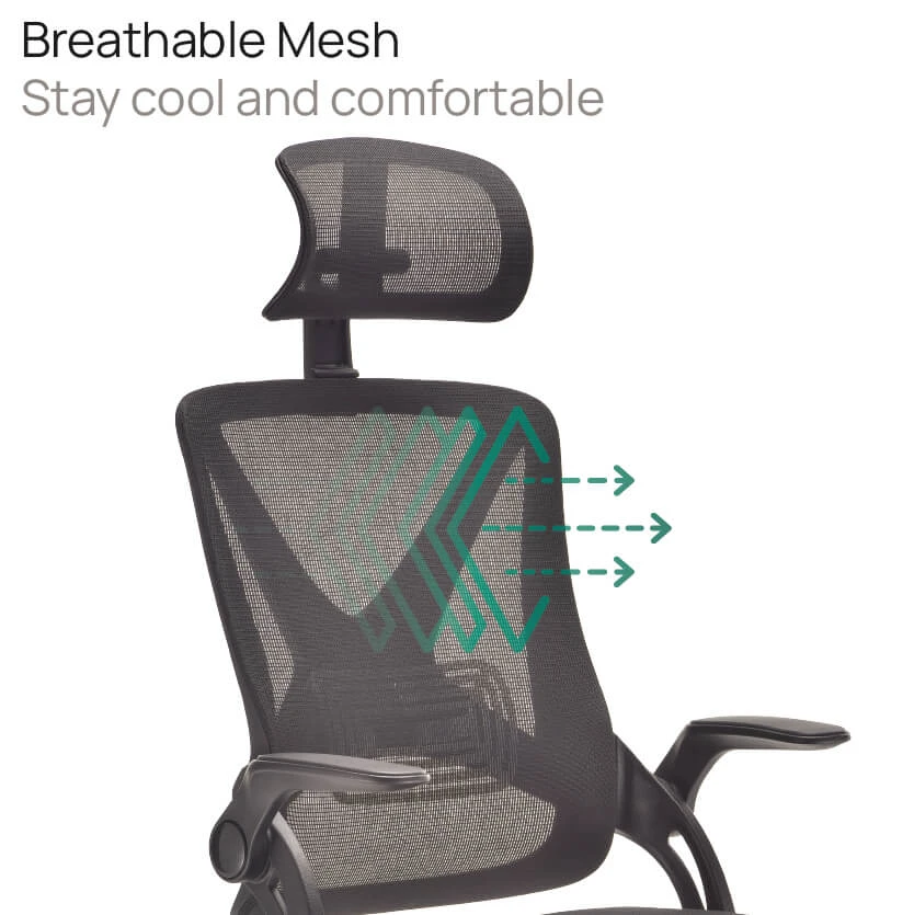 The SitSmart mesh office chair is a great value high back mesh office chair with headrest and adjustable arms as standard. A stylish, ergonomic office chair featuring space saving folding arms, designed for the ultimate daily comfort and support. Perfect for both home and commercial workspaces.