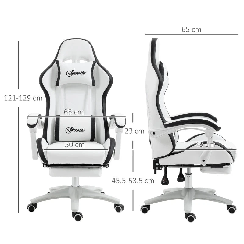 The Vinsetto Racing Gaming Chair features stylish faux leather in white, with a coloured edge. This is a beautiful and impressive game chair brings character into your games room, home office and beyond.
