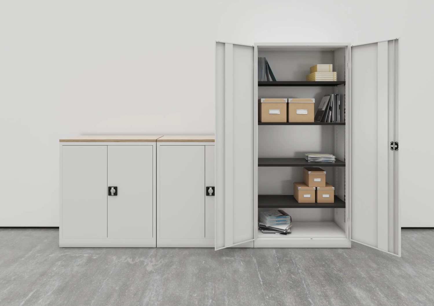 With a robust, sturdy construction, our steel cupboard range is a durable alternative to wooden storage. Lockable, with a 50kg weight tolerance and available in multiple height and colour options. This 2 door 1000mm high cupboard can accommodate shelves and hanging files (sold separately)